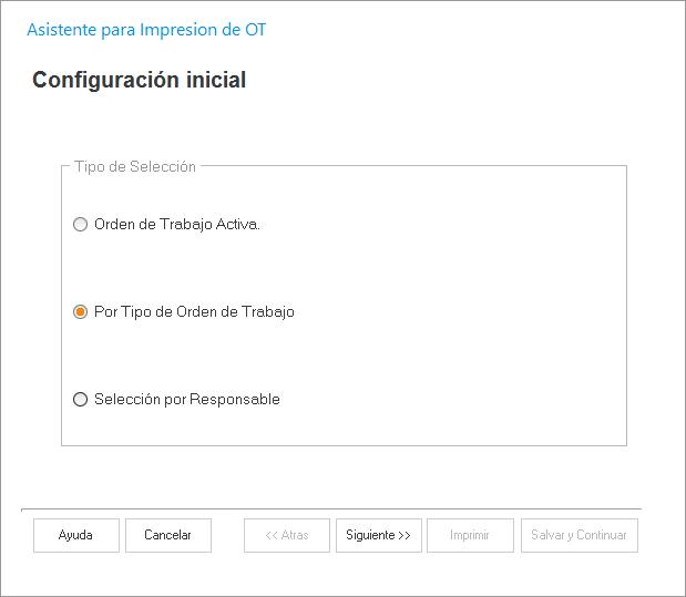 filtro por tipo de OT y manda a imprimir varias en una sola operación si ese fuera el caso se tendrá que enviar a impresora directamente sin pasar a la