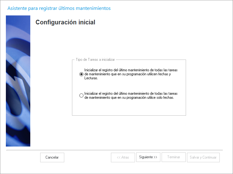 2.- Inicializar el registro del último mantenimiento de todas las tareas de mantenimiento que en su programación utilice solo fechas.