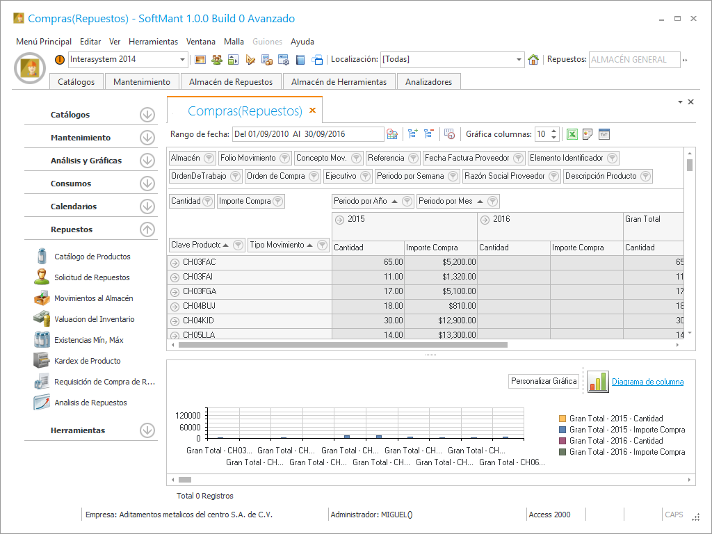 Podemos revisar los movimientos de repuestos con varios criterios de acomodo y despliegue.