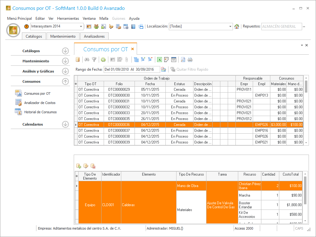En este módulo podemos ver el tipo y la cantidad de recurso que se necesita en la realización de la Orden de Trabajo, podemos agregar el recurso en el caso de que se nos haya olvidado agregarlo al momento de haberla creado.