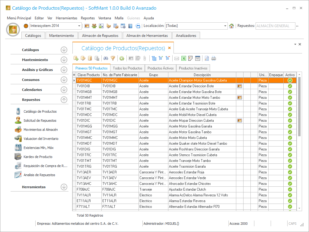 Registre todos sus materiales, repuestos de esta manera podrá controlar con precisión sus niveles de inventarios tenemos diferentes herramientas de consulta de la información capturada para poder desplegar.