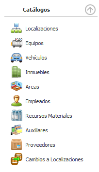 Estos son los Sub-Módulos que conforman esta sección de Catálogos y aquí se hace la captura de la información básica de nuestros vehículos, equipos, vehículos, áreas.