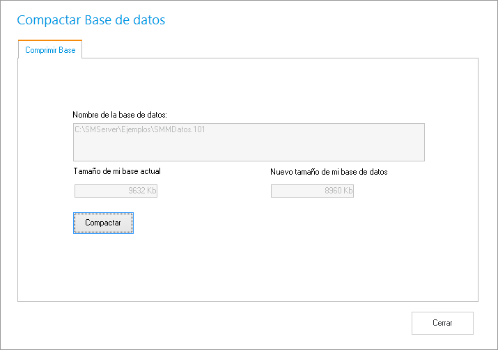 En esta opción se comprime los datos contenidos en nuestra base quitando registros eliminados previamente, esto reducirá el tamaño delarchivo que contiene la base. Aquí se detalla como realizar una compactación de base de datos. El entrar a este módulo es muy delicado sobre todo en la pestaña de limpieza de históricos en donde se puede eliminar históricos de varios módulos del sistema, por todo esto se recomienda que solo el administrador del sistema pueda entrar aquí a modificar.