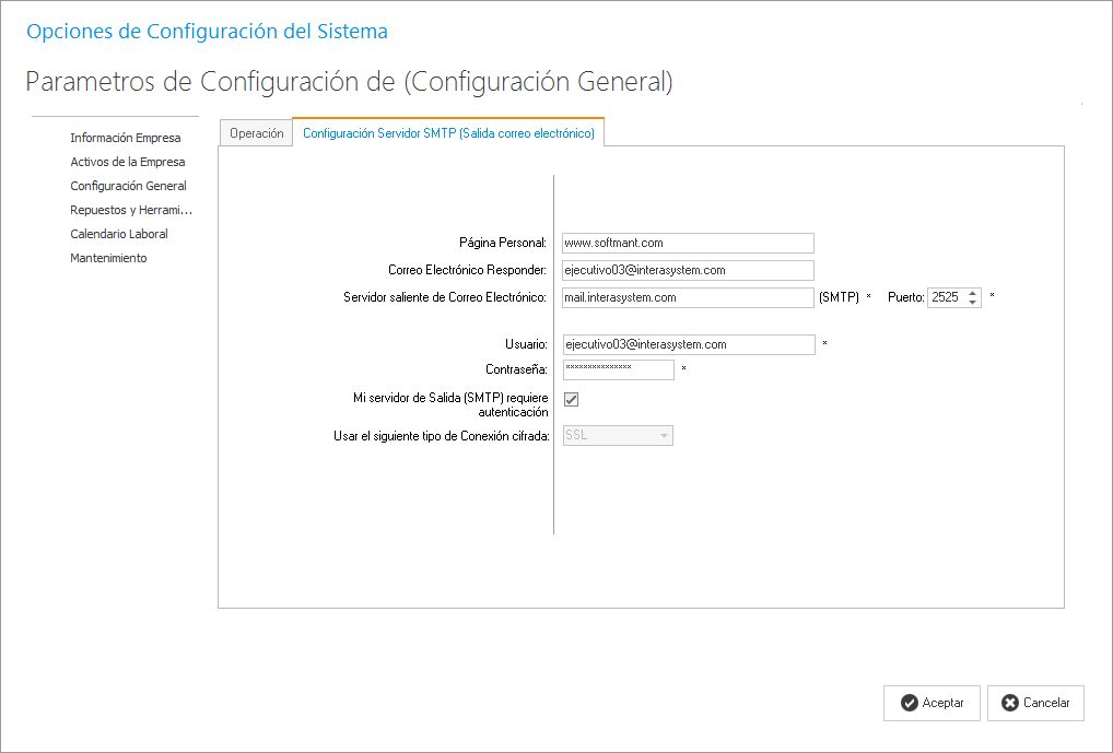 Configuración necesaria para enviar por correo de alertas por indicadores.