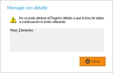 Si intentamos eliminar y contiene algun elemento en esa localización nos aparecera un mensaje como el siguiente: