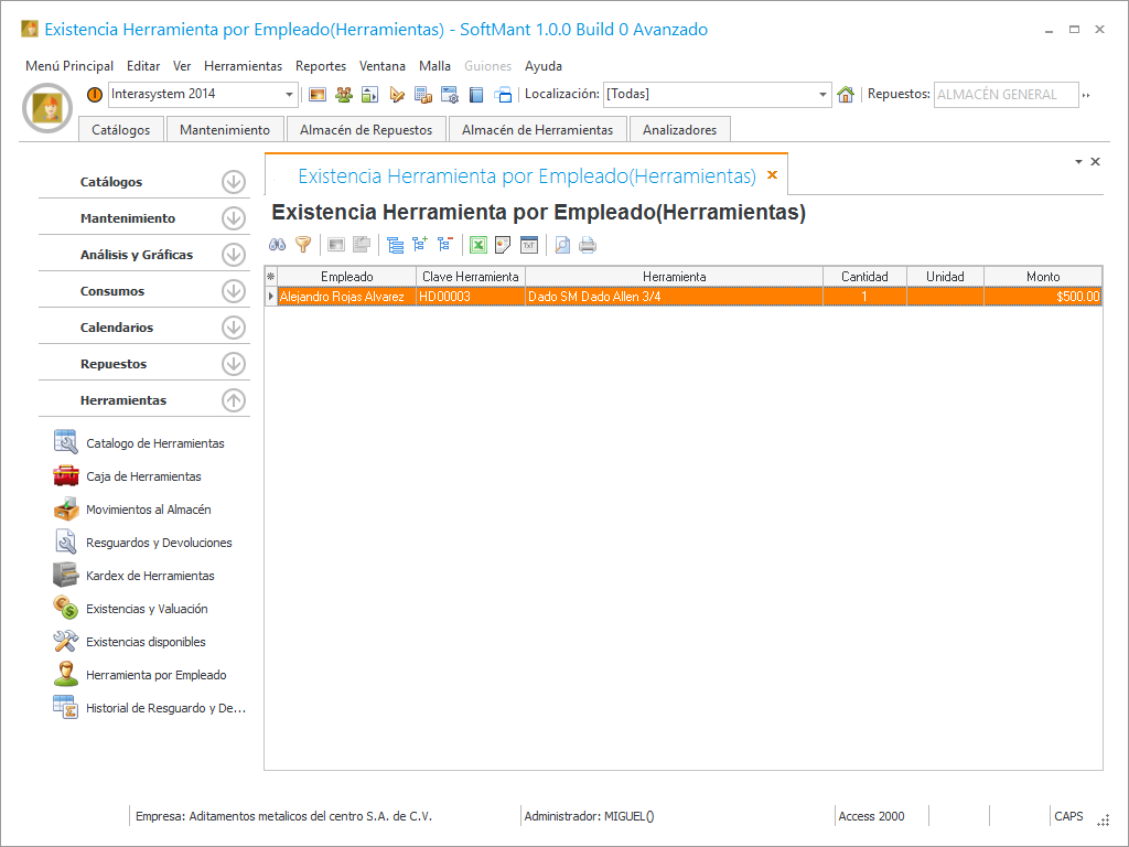 Aqui nos muestra la existencia total de resguardo que tiene cada empleado.