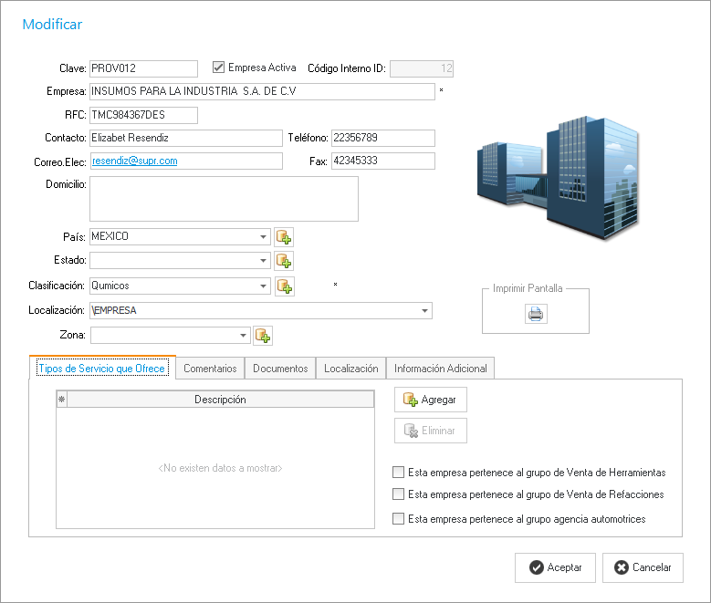 Modificar la información de los proveedores externos: Tenemos disponibles todos los campos para realizar cualquier modificación si fuera necesario.
